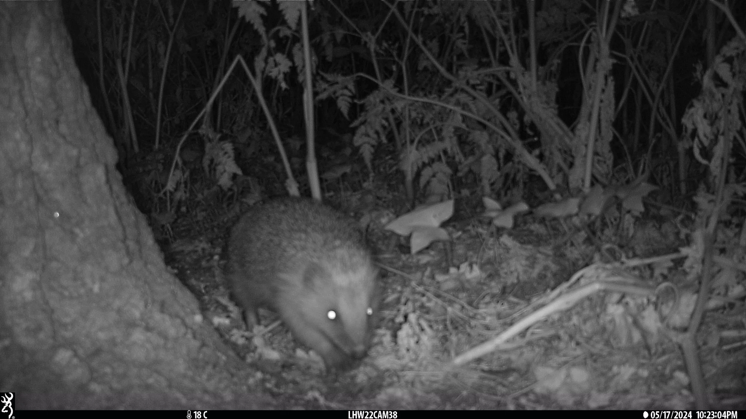 In 2022, we partnered with Ealing Wildlife Group to support their Hedgehog Highways project. 60 cameras were deployed in a range of park, garden and allotment habitats. Positively, hedgehogs were detected in four of the seven surveyed sites, with results indicating that residential areas were important for hedgehogs as higher levels of activity were seen here than in parks.